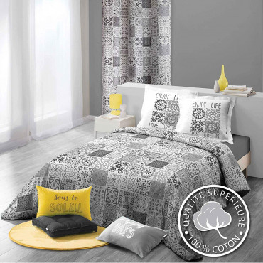 Juego de cama Pure Line 240x220 cm, apto para cama de matrimonio. Incluye una funda nórdica de 220x240 cm con estampados californianos en tonos grises, amarillos y blancos y 2 fundas de almohada...