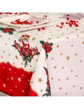 Nappe de Noël motifs Père Noël ou Cloche - Ronde - Anti tâches