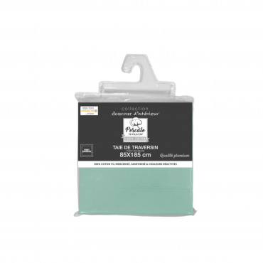 Fronha para travesseiro cilíndrico 85x185 cm em percal verde-sálvia