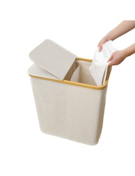 Cesto de roupa suja com alça de bambu - Cesto de roupa suja com 2 compartimentos e tampa - 110L Descubra o nosso cesto de roupa suja com alça de bambu, o acessório essencial para organizar a sua casa com estilo e respeito pelo meio ambiente. Feito de bambu natural e tecido, este cesto de...