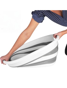 Cesto de roupa dobrável, 27 L, cinza/branco 🧺 Design dobrável ultracompacto: Dobra-se até apenas 8,3 cm para fácil armazenamento, perfeito para espaços pequenos ou viagens. 💪 Materiais robustos e duráveis: Projetado com plástico de...