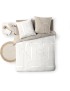 Dê um toque de suavidade e autenticidade ao seu quarto com o conjunto de cama "MODUL" da Douceur d'Intérieur. Feito em 100% algodão, ele combina conforto, respirabilidade e qualidade para noites tranquilas. O algodão natural permite excelente circulação de ar, ideal para regular a temperatura corporal. O conjunto inclui uma capa de edredom e duas fronhas de 63x63 cm, perfeitas para camas de solteiro ou de casal. Seu padrão elegante harmoniza-se com todos os estilos de quarto. Graças ao discreto fecho de pressão, o edredom permanece firme no lugar sem comprometer o estilo. Fácil de cuidar, pode ser lavado na máquina a 40°C e é fácil de passar. Com certificação Oeko-TEX, garante uma produção livre de substâncias nocivas, respeitando a pele e o meio ambiente.