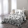 Inclui uma capa de edredom medindo 220 x 240 cm ou 240 x 260 cm com estampa de mosaico em preto e branco, e 2 fronhas quadradas medindo 63 x 63 cm com o mesmo desenho.