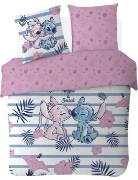 Disney - Capa de Edredom e Fronha Disney Angel & Stitch 63x63 cm - 100% Algodão - Rosa