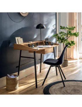 Atmosphera - Mesa Josan - metal✔️ Design industrial chique – Combinação elegante de metal preto e madeira clara 🗄️ Gaveta embutida – Ideal para guardar suprimentos, cabos ou documentos 📐 Tamanho conveniente – Ideal para espaços...