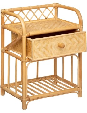 Atmosphera - Mesa de Cabeceira Aoni - Rattan Dimensões: C. 45 x L. 30 x A. 60 cm Material da estrutura e armação: Rattan Material da frente da gaveta + laterais + prateleiras: Painel de madeira compensada Material do folheado: Bambu Não...
